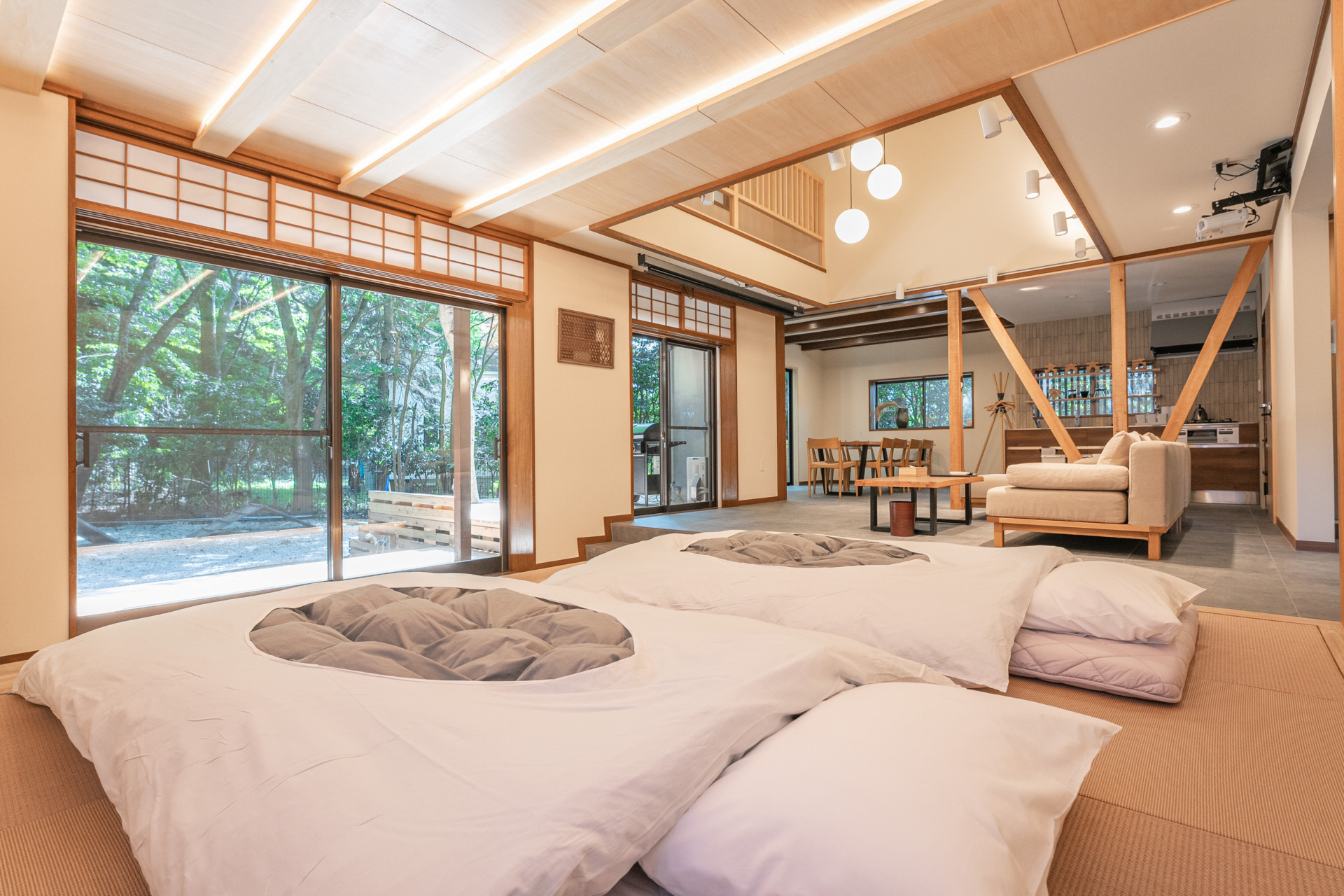 During the day, enjoy a walk in Gora's rich nature and art and culture, and in the afternoon play with your dog in the garden. When night falls, soak together in the hot spring bath and rest soundly in the large bed.